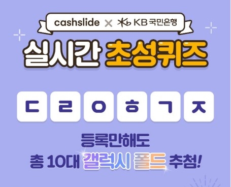 'KB오픈뱅킹 갤폴드' 관련 캐시슬라이드 초성퀴즈가 공개됐다.