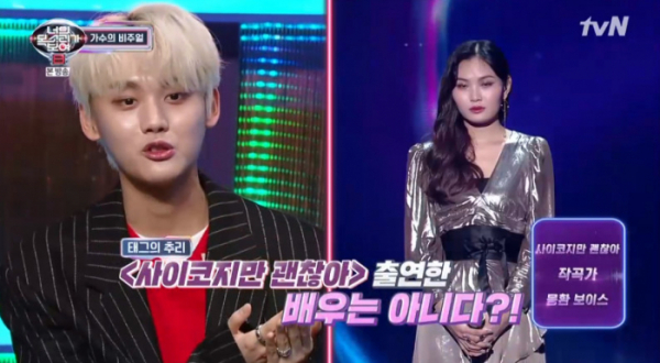 음치 수사대로 출연한 그룹 싸이퍼의 멤버 태그는 "최근 '사이코지만 괜찮아'를 정주행 중이다. 배우는 아닌 것 같고, 몽환적인 OST를 작곡한 작곡가 같다"라고 추리했다.