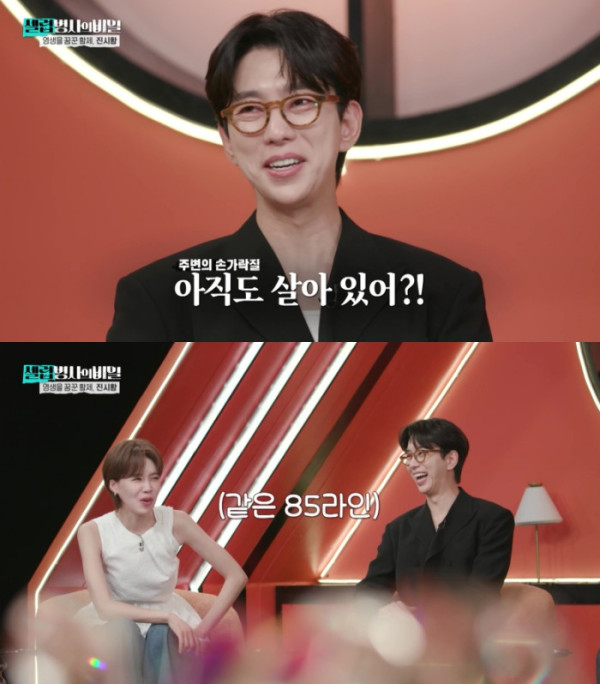 한편, 장도연은 "윤현민 씨의 '장수 계획'이 듣고 싶다"면서 재치있는 질문을 건넸다. 빨간 약을 먹으면 60살까지 살고, 파란 약을 먹으면 영생을 누릴 수 있는 선택지를 제시했다. 윤현민은 "60살은 너무 어리긴 하다"며 고민했다. 이에 장도연은 '영생'에 대해 사랑하는 이들과의 사별과, '아직도 살아 있냐'고 질책하는 주변의 싸늘한 시선까지 추가 조건으로 걸었다.