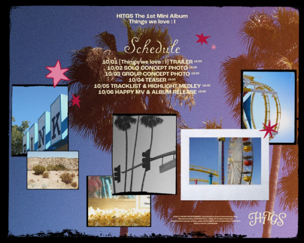 공개된 스케줄러에 따르면 HITGS는 1일 트레일러 영상을 시작으로 2일 개인 콘셉트 포토, 3일 단체 콘셉트 포토, 4일 타이틀곡 'HAPPY(해피)' 뮤직비디오 티저, 5일 트랙리스트와 하이라이트 메들리 등을 순차적으로 공개하며 글로벌 팬들을 설레게 할 예정이다.