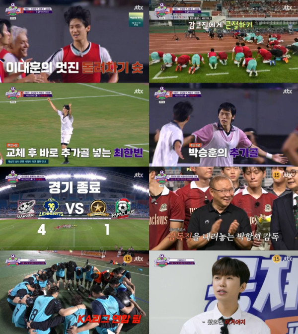 이날 '뭉쳐야찬다4'에서는 안정환 감독의 ‘FC환타지스타’와 박항서 감독의 ‘FC파파클로스’가 뭉친 ‘환타클로스’는 박항서가 감독을, 김남일 감독의 ‘싹쓰리UTD’와 이동국 감독의 ‘라이온하츠FC’가 뭉친 ‘싹쓰리하츠’는 이동국 감독이 감독을 맡았다.
