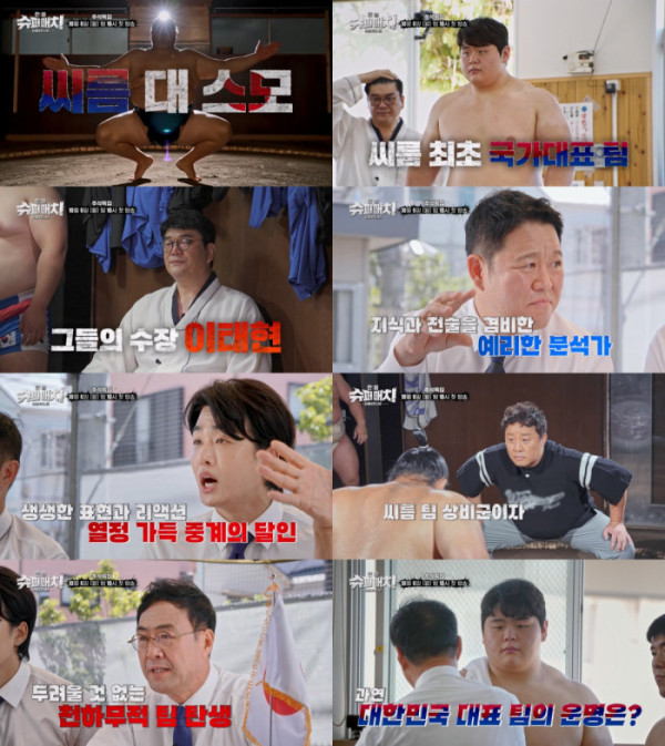 또 씨름팀의 상비군이자 만능 케어 매니저로는 ‘일본인 아내’를 두어 한일 간의 오작교 캐릭터이기도 한 정준하가 합류했다. 육중한 몸매를 자랑하는 정준하가 일본 ‘프로’ 스모 선수들 앞에서도 지지 않는 기세로 맞서는 모습이 포착돼, 정준하의 씨름 실력에도 기대가 쏠린다. 화룡점정을 장식하는 스페셜 감독으로는 ‘모래판의 황제’이자 전국민의 씨름 영웅 이만기가 출격한다. 백두장사, 천하장사, 한라장사까지 모두 휩쓸며 씨름계를 압도한 ‘레전드’ 이만기는 이태현 감독과 함께 씨름팀의 전략을 보강한다.