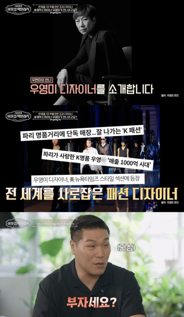 과거 우영미 건물의 세입자였던 자매는 이제 2천 평 사옥을 거느린 조경계의 대부호로 우뚝 섰다. 이에 서장훈은 "우영미 선생님이 제일 부자셨는데, 지금은 뛰어넘으셨냐"며 호기심을 폭발시킨다. 이어진 우현미의 대답에 서장훈과 장예원은 충격과 놀라움으로 말을 잇지 못했다는 후문이다. 이런 가운데 서장훈은 "그 사옥에 가서 우영미 선생님을 뵌 적이 있다"며 뜻밖의 인연을 공개해 놀라움을 더한다. 또 "6개월 뒤에는 우영미 선생님을 직접 모시겠다"고 발언해, '패션 여제'의 출격에 대한 기대감을 한껏 끌어올린다.