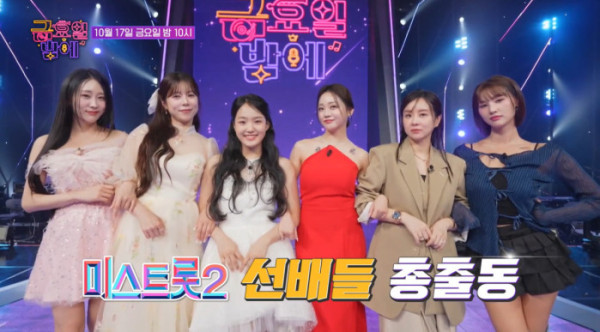 이날 '금요일밤에'는 ‘트롯 선후배의 밤’ 특집으로 트롯계 기강(?) 잡으러 온 ‘미스트롯2’ 선배들과 패기로 뭉친 ‘미스트롯3’ 요정들의 트롯 대결이 벌어진다.