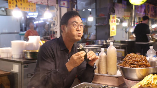 금리단길 옆 성동시장에는 30년째 한 자리를 지키는 우엉 김밥집이 있다. 김밥 위에 우엉을 수북이 얹어 내는 이 집은 시어머니에게 물려받은 2평 남짓한 자리에서 거친 생우엉을 팔이 굵어지도록 밀어온 어머니가 운영한다. 그녀에게 우엉 김밥은 생계이자 삶의 기록이다. 금쪽같은 자식들을 키워내고 하루하루 묵묵히 광내온 세월이 그 안에 담겨 있다. 산더미처럼 쌓인 우엉을 얹으며 그녀는 오늘도 시장의 온기를 이어가고 있다. 꼭꼭 눌러 잘 말아낸 김밥 한 줄, 어머니의 삶을 맛본다.