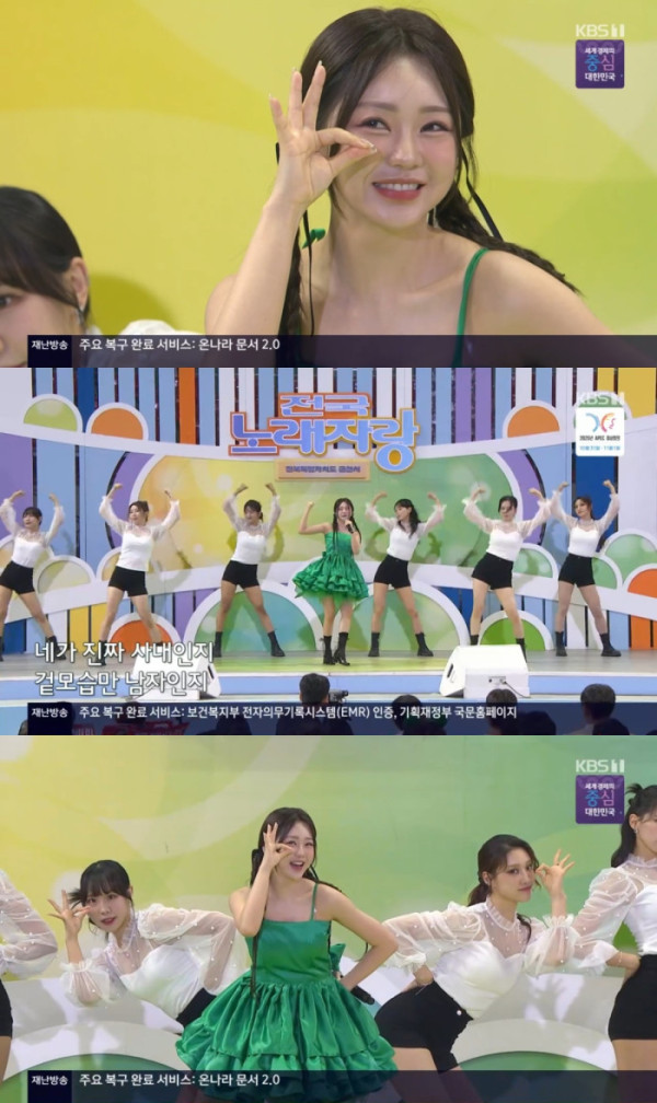 이날 오프닝을 장식하는 축하 무대를 펼치게 된 홍지윤은 깔끔하고 화사한 메이크업으로 청초하고 단아한 비주얼을 자랑했다. 그린 컬러의 미니 드레스 스타일링으로 고전적인 매력과 트렌디한 매력을 동시에 잡은 홍지윤은 상큼하고 밝은 무대로 일요일 낮을 흥으로 물들였다.
