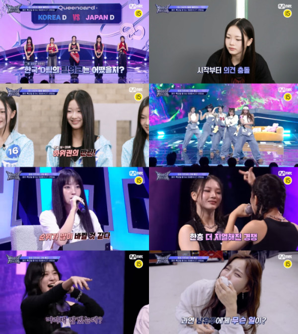 특히 하위권으로 분류된 한국 D팀의 반전 무대가 관심을 모은다. 선공개 영상에서는 아이들 소연의 '퀸카(Queencard)'를 재해석한 한국 D팀의 연습 과정이 공개됐다. 이들은 사전 평가에서 팀 최하위권을 기록했지만, 연습 과정에서 끈끈한 팀워크를 다지며 성장하는 모습을 보여 기대감을 높였다.