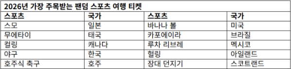 익스피디아는 2026년을 ‘팬덤 스포츠 여행’의 해로 전망했다. 응답자의 57%가 여행 중 지역 스포츠 경기를 관람할 가능성이 높다고 답했으며, 한국 여행자들의 경우 스포츠 특유의 몰입감과 현지 문화 체험 욕구가 강하게 나타났다.