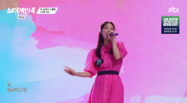 한편, 13호 가수는 "자신을 두 남자가 소환한 가수"라고 말했고, 두 남자는 자신의 아들과 아버지라면서 자신이 무대에 다시 서는 것을 응원해줬다고 밝혔다. 그가 부른 노래는 채림이 주인공이었던 드라마 '사랑해 당신을' OST 'I'm Still Loving You'였다.