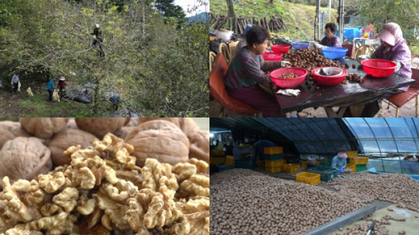 전라북도 정읍시의 한 호두 농원. 하루 목표량인 1.5t의 호두를 수확하기 위해 모든 작업자가 분주히 움직이고 있다. 호두를 수확할 때는 무거운 대나무 장대를 올려 나무를 털어야 하는데 나무는 상하지 않고 호두만 떨어트리는 것이 노하우라고 한다. 그뿐만 아니라 호두나무에 올라가 직접 수확을 하기 때문에 떨어져 다치는 경우도 다반사라고 한다. 그렇게 수확한 호두는 청피를 벗기고 깨끗이 세척한 후 5일의 건조를 마친 후에야 우리가 알고 있는 알 호두를 얻을 수 있다. 그런데 속껍질 자체가 단단하기 때문에 집중력과 노동력이 필요하다. 기계를 사용할 때는 호두가 깨질 수도 있어 일일이 사람이 수작업으로 까야 한다. 견과류의 대명사, 호두를 수확하는 이들을 따라가 보자.