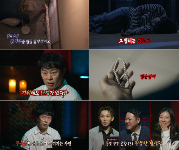 한편, '심야괴담회 시즌5'에선 매일 밤 찾아와 노래를 부르는 단발머리 소녀의 비밀 ‘단발머리’, 할머니를 찾아온 정체 모를 손님, 그리고 시작된 끔찍한 저주 ‘마지막 손님’, 합격 팔찌를 차고 일어나는 기묘한 일들, 그리고 CCTV에 남아있는 그날의 비밀 ‘하얀 팔찌’ 등 시청자들의 밤을 서늘하게 만들 괴담들이 소개될 예정이다.