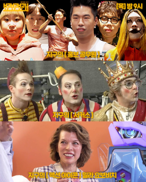 양주시, 울주군 등 홍보 공무원 6인과 '태양의 서커스' 단원, 배우 밀라 요보비치가 '보고보고보고서'에 출연한다.
