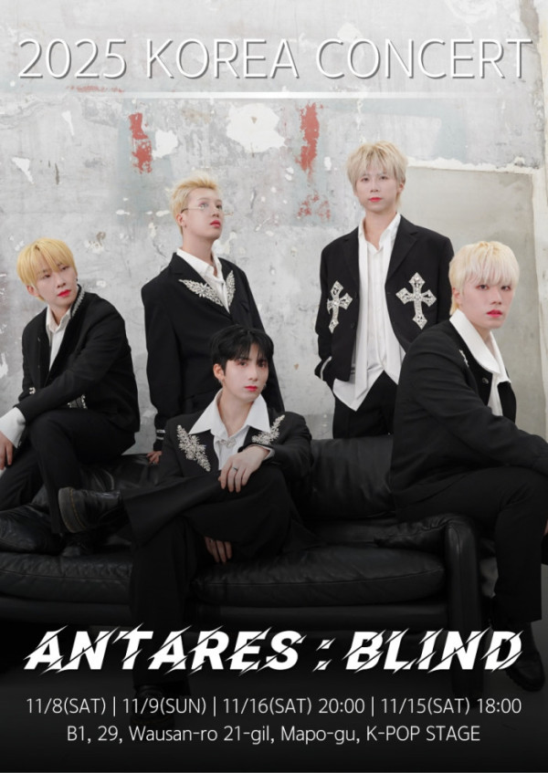 이번 공연은 지난 2일 진행된 팬 쇼케이스 이후 국내 팬들과의 소통을 이어가는 자리로 마련됐다. 안타레스는 세련된 팝 사운드와 강렬한 퍼포먼스를 앞세워, 새 싱글 'Blind'를 비롯해 데뷔곡 'Runaway(러너웨이)', 'Counting Stars(카운팅 스타즈)', 'POWER UP(파워 업)', 'Laundry Day(런드리 데이)', 'Starlight(스타라이트)' 등 다채로운 무대를 선보일 예정이다.