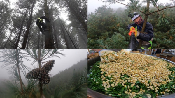 꼭대기에서 잣을 터는 작업자가 전투의 최전선에 있다면, 수거를 담당하는 땅 위의 작업자 역시 수백 번 산비탈을 오르내리며 40kg이 넘는 포대 자루를 짊어지고 옮겨야 하는 체력적인 부담을 안고 있다. 게다가 불시에 땅벌들의 공격까지 받을 수 있어 한순간도 긴장의 끈을 놓을 수 없다. 그렇게 목숨을 건 고공 작업을 통해 수확한 잣송이는 수매장과 가공 공장으로 옮겨져 자연 건조와 탈각, 선별 등의 여러 가공 단계를 거치게 되는데. 여기에 겨울철에만 맛볼 수 있는 ‘잣 만둣국’까지, 식탁 위 한 알의 잣을 만들어내기 위한 긴 여정을 따라가 본다.