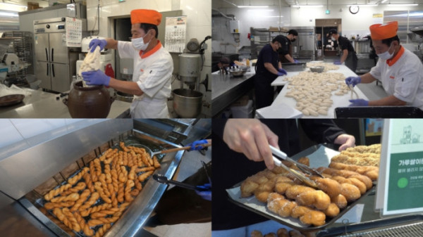 제과점 한편, 만년 조연으로 치부되던 꽈배기가 당당히 주연의 자리를 꿰찬 곳이 있다. 충남 당진의 한 빵집, 이곳의 하루는 새벽 4시 30분부터 시작된다. 하루 4,000개 분량의 꽈배기 반죽을 준비하려면 이른 새벽부터 작업을 서둘러야 하기 때문이다. 밀가루 대신 찹쌀과 멥쌀을 기본으로, 지역 내에서 공수한 신선한 부재료를 더해 꽈배기를 만든다는 이곳. 무게 20kg, 약 400인분 분량의 반죽을 하루 10번 이상 반복적으로 빚어내야 하는 고단한 작업이 이어진다.