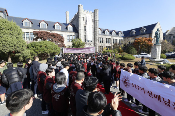 ▲2026학년도 대학수학능력시험을 하루 앞둔 12일 서울 종로구 중앙고등학교에서 열린 장행식(이투데이DB)