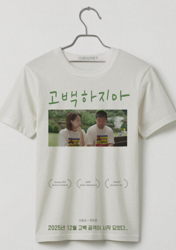 공개된 티저 포스터는 ‘입고 다니는 포스터’라는 독창적 콘셉트를 담고 있다. 흰 티셔츠 위에 포스터가 인쇄된 듯한 메타 디자인으로 제작돼 실제 굿즈를 보는 듯한 착시를 선사하며, 가슴 중앙에 자리한 영화 속 장면이 극의 감성을 생생하게 전달한다.