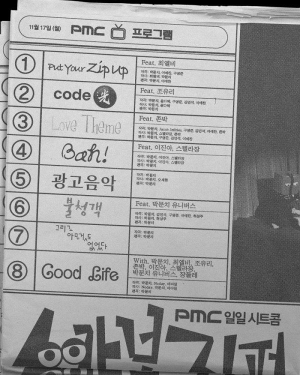 '불청객 (Feat. 박문치 유니버스)'은 일상 속 공허한 순간에 마주하는 자신의 모습을 TV 화면을 바라보듯 담아내 묘한 거리감과 감정의 섬세함이 인상적이다. '그리고 아무것도 없었다'는 비어 있는 순간의 여운을 음악적으로 풀어낸 곡이며, 마지막 트랙 'Good Life'는 참여 아티스트 전원이 한 소절씩 노래에 참여해 시트콤 엔딩 같은 따뜻하고 낭만적인 마무리를 완성한다.