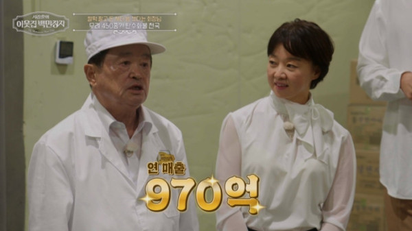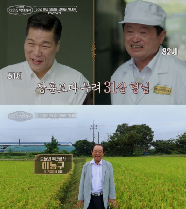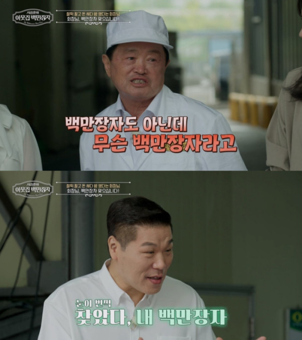 이에 서장훈은 "백만장자가 여러 가지 뜻을 가지고 있다. 실제로 부자이시긴 하시지 않냐"고 덧붙였다. 이능구 회장은 "부자라면 부자라지만, 우리가 매일 40인분을 1만 박스 정도 출고한다. 40만 명의 소비자들이 있으니 부자고, 우리 천여 명 되는 식구들이 있어 내가 부자다"라며 고개를 끄덕였다.