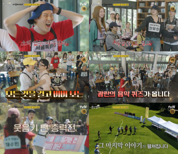 tvN '출장 십오야' 스타쉽 전국체전 마지막 회는 19일 오후 10시 50분 방송된다. 풀 버전은 다음날 오전 9시 유튜브 '채널 십오야'를 통해 공개된다.