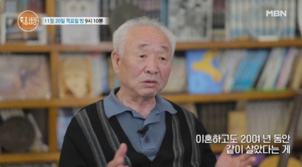 이종구는 '추적자' 심리분석관 역으로 눈도장을 찍었으며, 이종구는 국민 성우로도 활약하고 있다. 그런데 이종구는 "이혼하고도 20여 년동안 같이 살았다는 게 있을 수 없는 일이지 않느냐"라며 "그런데 우린 한집에서 20년째 같이 살았다"라고 말해 호기심을 자극한다.