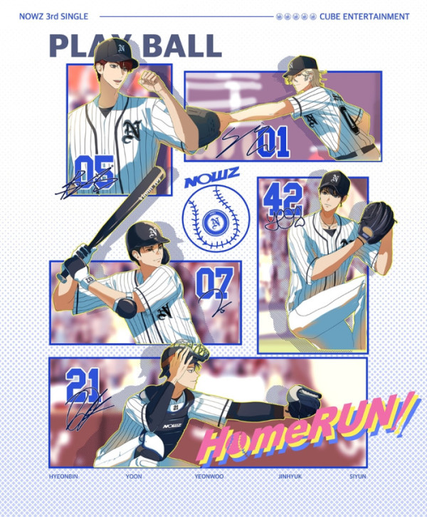 나우즈(현빈, 윤, 연우, 진혁, 시윤)는 지난 20일 공식 채널을 통해 세 번째 싱글 'Play Ball' 일러스트 포스터를 공개했다. 멤버들은 작품에서 야구부원으로 등장해 경기에 나서기 전 함께 결의를 다지면서 꿈의 무대를 향해 나아갔다.