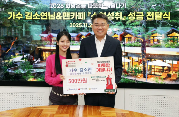 이어 20일 김소연의 공식 팬클럽 '소연성취'는 노원구에 500만 원을 기부하며 나눔 실천에 뜻을 모았다. 나눔과 기부 문화 확산에 앞장서는 김소연과 팬들의 선한 영향력이 훈훈한 온기를 선사하고 있다.