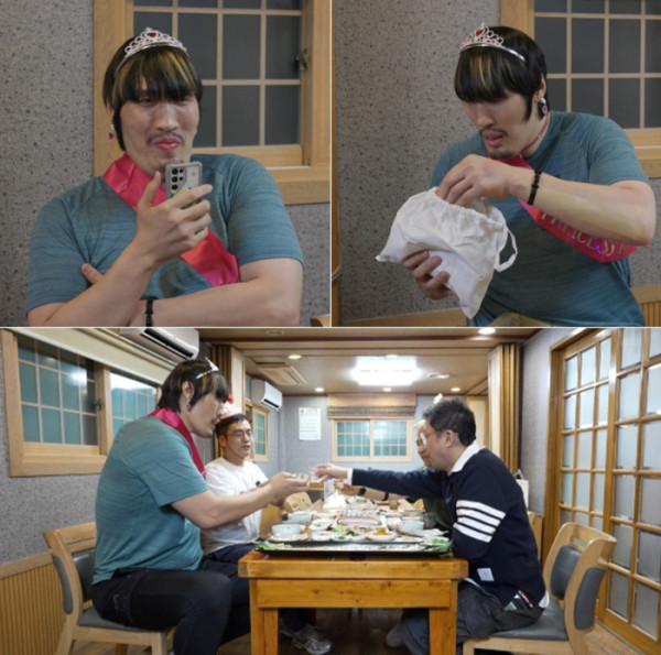 제주도에 도착한 최홍만은 단골 식당에서 지인들과 생일 만찬을 즐겼다. 1M 통갈치구이와 성게알회, 전복구이까지 풍성한 한 상 차림이 시청자들의 군침을 자극할 예정이다. 식사 자리에서는 지난 ‘전참시’ 출연 이후 화제가 된 ‘썸녀’ 이야기가 다시 소환된다. “진짜 썸녀가 있는 거냐”는 질문에 최홍만은 직접 전화 연결을 시도하며 시선을 집중시켰다. 전화를 받은 ‘그녀’에게 최홍만이 ‘똥쿠~♥’라는 애칭으로 인사를 건네자 현장은 순식간에 핑크빛으로 물들었다.