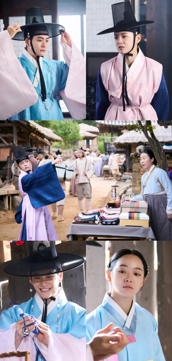 여기에 사내의 옷을 벗어 던지고 아리따운 새 옷으로 차려입은 박달이의 자태도 시선을 집중시킨다. 데이트룩이라고 해도 손색없을 만큼 남다른 맵시를 자랑하는 이강과 박달이는 도성 최고의 유행인 ‘인생네첩’까지 도전한다. 환한 미소만큼이나 행복함이 가득할 두 사람의 나들이 현장에는 또 어떤 일들이 펼쳐질지 기다려진다.