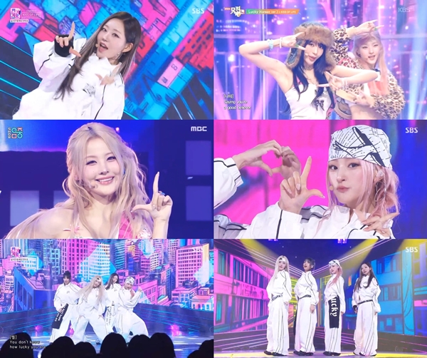 KISS OF LIFE(키스오브라이프)는 지난 21일 KBS '뮤직뱅크' 방송을 시작으로 MBC '쇼 음악중심, SBS '인기가요'에 출연해 신곡 'Lucky (Korean Ver.)' 무대를 선보였다. 키스오브라이프는 톡톡 튀는 에너지와 팀 합이 돋보이는 퍼포먼스와 러블리하고 생동감 넘치는 보이스로 보는 이들을 행복 속에 빠지게 했다.