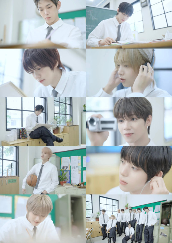 무드 필름 속 아홉은 교실과 복도 등 학교 곳곳에서 시간을 보내며 'School Hours' 콘셉트를 자연스럽게 풀어냈다. 책상에 앉아 공부하는 장면부터 음악 감상, 그림 그리기, 공놀이 등 멤버 각자의 성격을 드러내는 다양한 장면이 이어지며 동아리 활동을 즐기는 학생 같은 풋풋함을 강조했다. 청량한 비주얼과 친구 같은 친근한 매력은 첫 시즌 그리팅에 대한 기대감을 더욱 높인다.