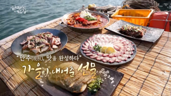 거제 바다의 이른 새벽, 이병규(68세) 씨의 어선이 방어잡이를 위해 바다로 나선다. 수온이 내려가는 늦가을부터 몸집을 불리는 방어는 지금부터 제철이다. 이병규 씨가 잡아 온 생선을 손질해 파는 건 아들 이송학(35세) 씨의 몫. 능숙한 솜씨로 방어회를 뜬다. 이맘때면 많은 사람들에게서 사랑 받는 방어회지만 송학 씨가 최고로 꼽는 방어 요리는 따로 있다는데. 바로 어머니 장필자(58세) 씨가 자주 만들어주었던 방어대가리김치찜이다. 손님상에 방어회를 올리고 남은 부산물을 넣어 끓인 김치찜은 어려운 형편에 자식들을 배불리 먹이기 위해 만든 어머니의 사랑이 담긴 요리다. 대삼치는 손주들의 입맛을 따라 소금구이와 양념구이로 나누어 요리하고, 남편이 좋아하는 문어는 데친 후 간을 해 조물조물 무쳐 내놓는 장필자 씨. 이병규 씨는 사랑하는 아내와 아들 내외, 눈에 넣어도 아프지 않을 손주들까지 가족과 함께하는 이 한 상으로 바다에서 홀로 견딘 오랜 노고를 위로받는다. 3대가 함께하는 늦가을 바다의 풍요로운 밥상을 만나 본다.