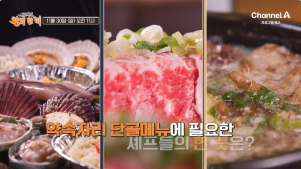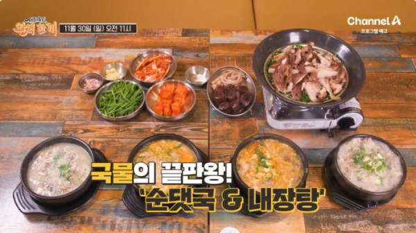 30일 ‘셰프의 손 길 완벽 한 끼’ 6회 방송에서는 용인 내장탕 & 순대국 맛집, 당산 조개구이&조개찜 전골, 강남 수육전골 & 해물양지샤부샤부(도넛샤브) 식당 등 다채로운 맛을 찾아간다.