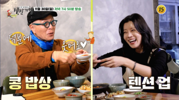 30일 '식객 허영만의 백반기행'에서는 배우 유선과 웰빙 콩 밥상을 주제로 손두부, 청국장, 두부 오마카세 등 다채로운 음식을 만난다.