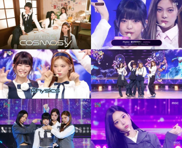 코스모시는 지난달 28일 방송한 KBS2 '뮤직뱅크'를 시작으로, MBC '쇼! 음악중심', SBS '인기가요' 등 각종 음악 방송에 출연해 2nd EP 'of the world'의 첫 번째 선공개 싱글 'Physics ~ 物理的な ~'('Physics ~ 물리적 이야기 ~') 무대를 꾸몄다.