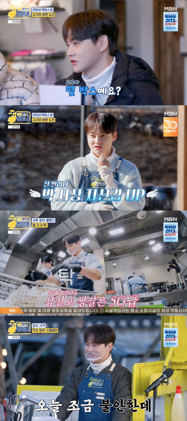 이날 방송에서 박서진은 소풍 도시락으로 준비한 ‘고구마 브륄레’와 ‘특제 고구마 김밥’으로 알바생 수호의 환심을 산 뒤, 즉시 고구마 300박스 완판 도전이 펼쳐질 라이브커머스 현장으로 이동했다. 박서진은 생방송 직전까지 긴장감을 드러냈지만, 막상 카메라가 켜지자 특유의 차분한 말솜씨와 센스 있는 진행력으로 분위기를 단숨에 주도했다.