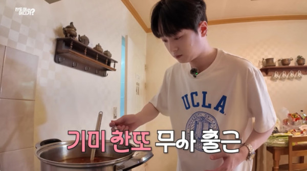 식사 후에도 이찬원의 활약은 계속됐다. 그는 야식으로 짜장라면을 준비하며 반숙 계란을 고집했고, 완성된 라면을 맛본 뒤 "내가 했지만 맛있다"고 웃으며 셀프 칭찬을 건넸다.