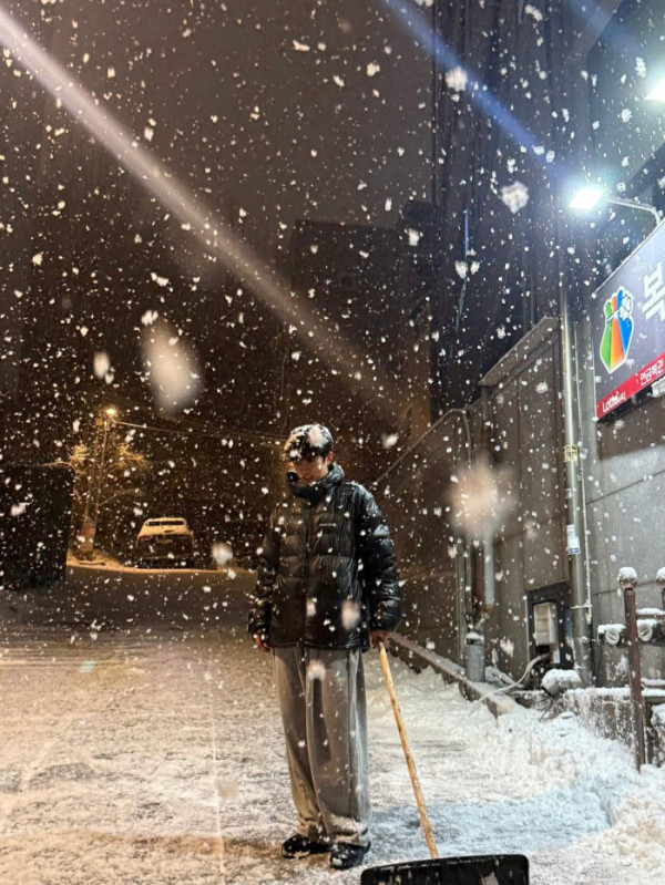 공개된 사진에는 펑펑 쏟아지는 첫눈을 온몸으로 만끽하는 임영웅의 소탈한 일상이 담겼다. 두툼한 패딩 차림의 그는 늦은 밤 골목길에 쌓인 눈을 직접 치우기 위해 빗자루를 들었고, 머리 위로 소복이 눈이 쌓이는 줄도 모른 채 해맑은 미소를 짓고 있어 보는 이들마저 행복하게 만든다.
