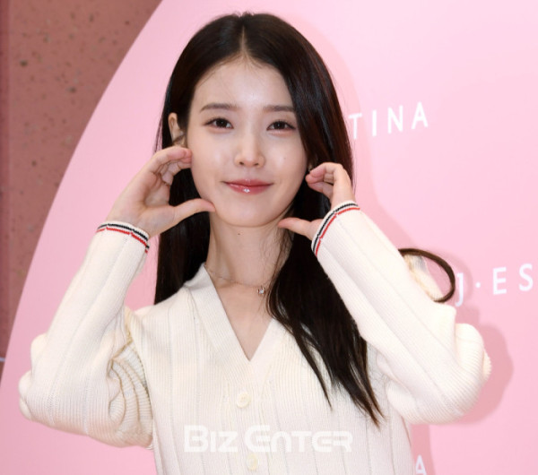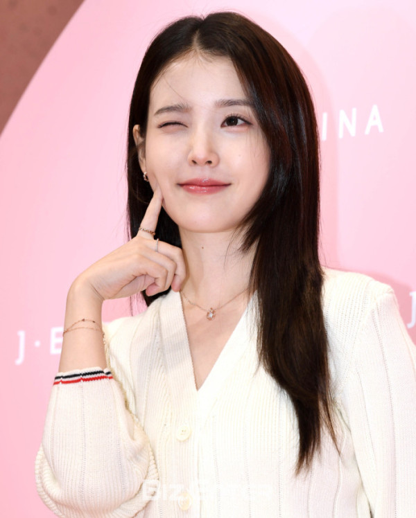 아이유가 26일 서울 잠실 롯데백화점에서 열린 브랜드 제이에스티나(J.ESTINA) 팝업스토어 오픈행사 참석해 포즈를 취하고 있다.