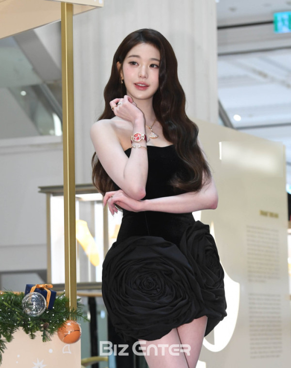 아이브 장원영이 4일 서울 신세계백화점 강남점에 오픈한 주얼리 브랜드 불가리의 '홀리데이 디바스 드림' 팝업에 참석해 포즈를 취하고 있다.