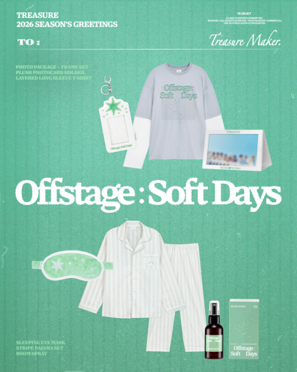 YG플러스(037270)는 "오는 11일 오전 11시부터 트레저의 2026년 시즌그리팅 MD 예약 판매를 시작한다"라고 10일 밝혔다. 트레저의 이번 MD 'Offstage : Soft Days'는 겨울 분위기를 담은 콘셉트로, 수면안대와 잠옷 등 일상생활에서 활용 가능한 라이프스타일 제품군으로 구성됐다.