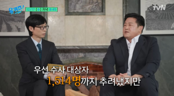15일 공개된 '유퀴즈' 예고 영상에는 신정동 연쇄살인 사건의 진범을 잡기 위해 끈질긴 추적을 벌인 김장수 형사가 등장했다.