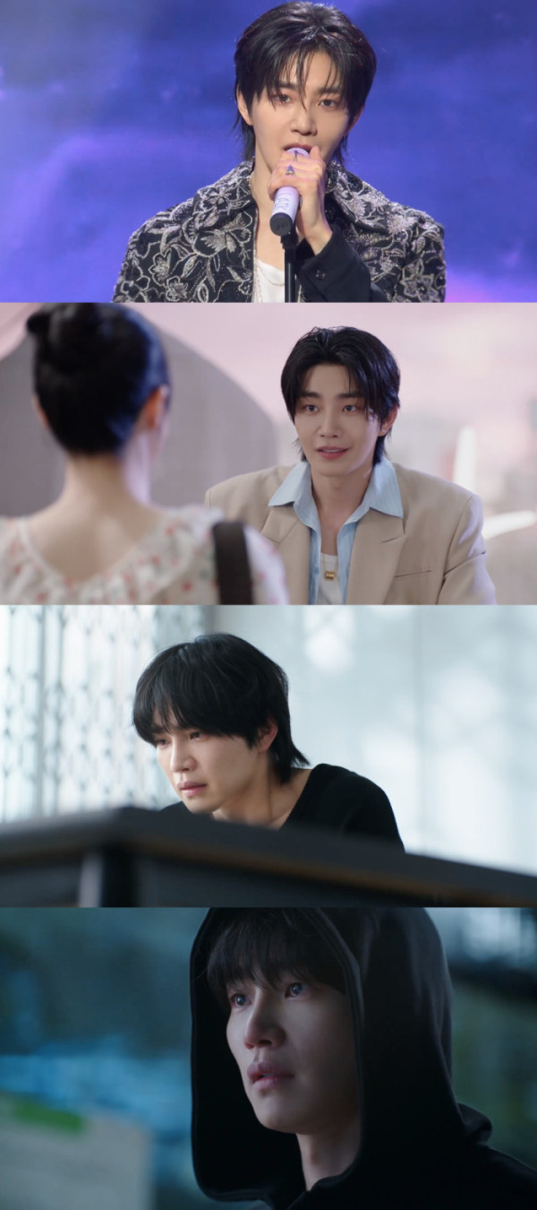 ‘아이돌아이’ 1, 2회에서는 완벽한 스타에서 한순간에 살인 용의자로 전락한 도라익의 서사가 집중적으로 그려졌다. 아이돌 그룹 ‘골드보이즈’의 메인 보컬이자 센터인 도라익은 무대 위에서는 누구보다 빛나는 스타지만, 무대 밖에서는 과호흡과 이명, 극심한 압박감에 시달리며 위태로운 일상을 버텨낸다. 특히 사생팬의 도를 넘는 침입으로 일상이 무너지고, 예민해진 감정 속에서 멤버 최재희(박정우 분)와의 갈등이 폭발하며 불안은 극단으로 치닫는다.
