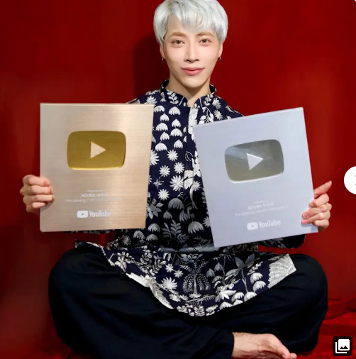 아우라는 최근 자신의 SNS에 “골드버튼 너무 감사해요”라며 골드버튼 인증 사진을 올렸다. 공개된 사진에서 그는 인도 전통 패턴의 네이비 톤 의상을 입고 골드버튼과 실버버튼을 함께 들고 환하게 웃고 있다.