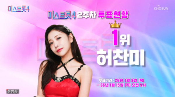 '미스트롯4' 5화 방송 전, 시청자 투표하기 상위 탑5 순위 결과가 공개됐다.