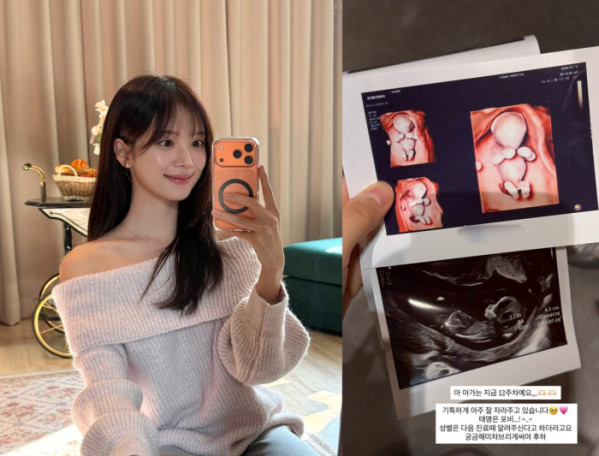 김지영은 19일 자신의 SNS를 통해 "이 아가는 지금 12주 차예요"라는 글과 함께 초음파 영상을 게재했다. 그는 아이가 기특하게 아주 잘 자라주고 있다며 "태명은 포비"라고 밝혔다. 이어 아이의 성별은 다음 진료 때 알 수 있다며 "궁금해서 미쳐버리겠다"는 말로 기대감을 내비쳤다.