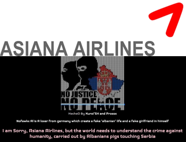 해킹 집단은 아시아나 항공 홈페이지에 "현재 코소보에는 '평화와 새로운 시작, 과거를 잊자'는 뉴본 기념비가 있는데 이 기념비를 파괴할 것"이라면서 "세계가 인류에 대한 범죄를 이해할 필요가 있다"는 문구와 함께 게재돼 있다.